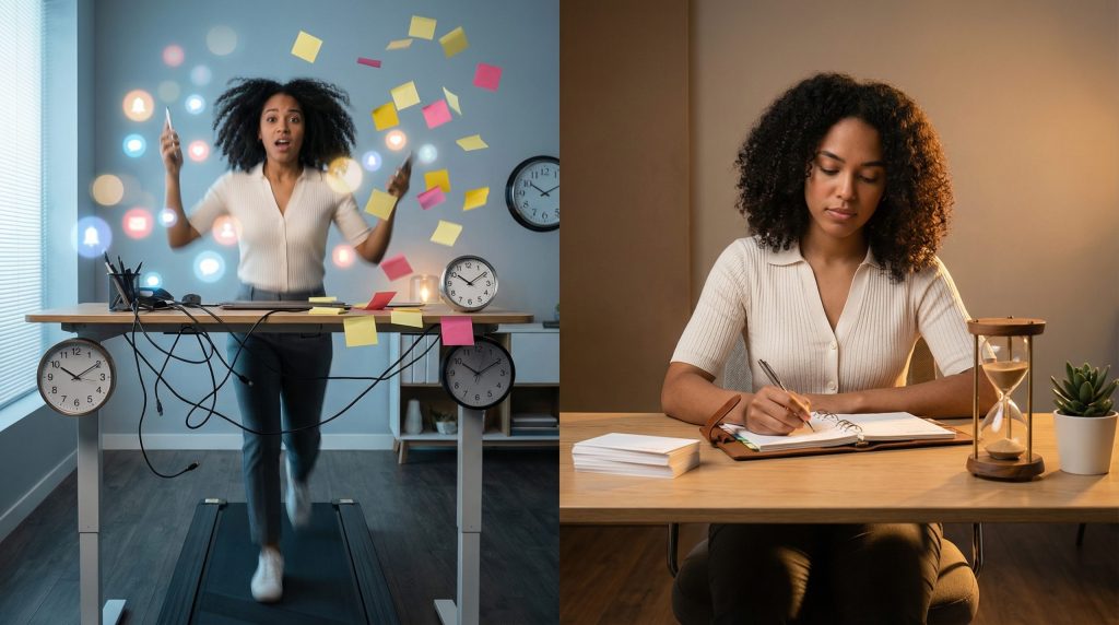 Produtividade não é sobre trabalhar mais horas, mas sobre impacto. Especialistas sugerem que devemos proteger nossa atenção com vigor. Estratégias como agrupar tarefas semelhantes (batching) e eliminar decisões triviais poupam energia mental para o que realmente importa.
